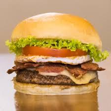 PÃO BRIOCHE, CARNE ARTESANAL DE 120G, OVO BARBECUE, QUEIJO CHEDDAR, SALADA, MILHO E BATATA.